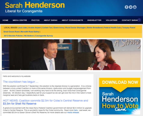 The Coalition candidate for Corangamite VIC Sarah Henderson‘s support for renewable energy is in question as it was revealed she endorses Ted Baillieu’s controversial anti-wind farm laws.