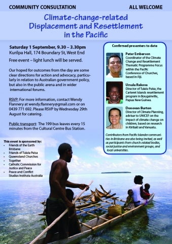 Contributors from Pacific Islander communities in Brisbane are also being invited, as well as participants from church-related bodies, social justice and environment groups, and