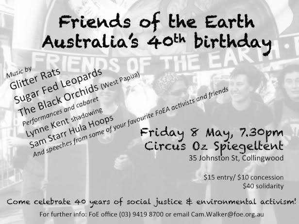 or post to FoE 40 years, Box 222, Fitzroy, 3065.
