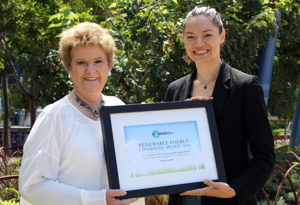 Ararat Councillor Gwenda Allgood received the inaugural FoE Renewable Energy Champion Award at the Melbourne Sustainable Living Festival in Melbourne in February 2014.